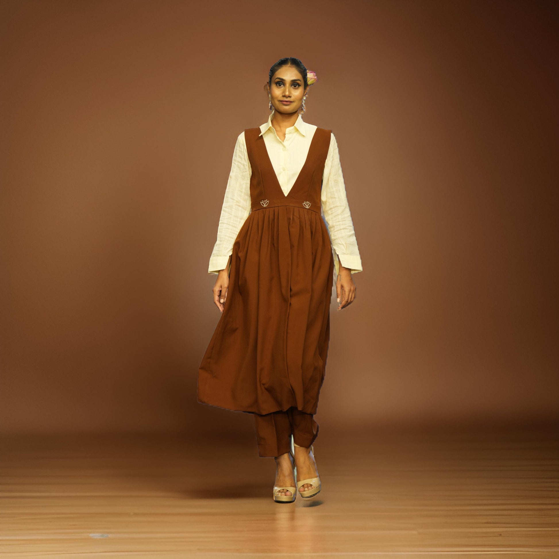 Elevate your style with this chic midi dress featuring a unique layered design. The dress is paired with a classic shirt underneath, creating a perfect blend of sophistication and casual elegance. Ideal for any occasion, this versatile piece offers both comfort and flair, making it a must-have addition to your wardrobe. Crafted with high-quality fabrics, it ensures a flattering fit while keeping you effortlessly stylish